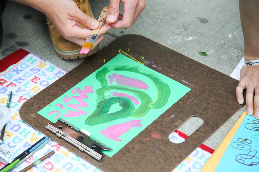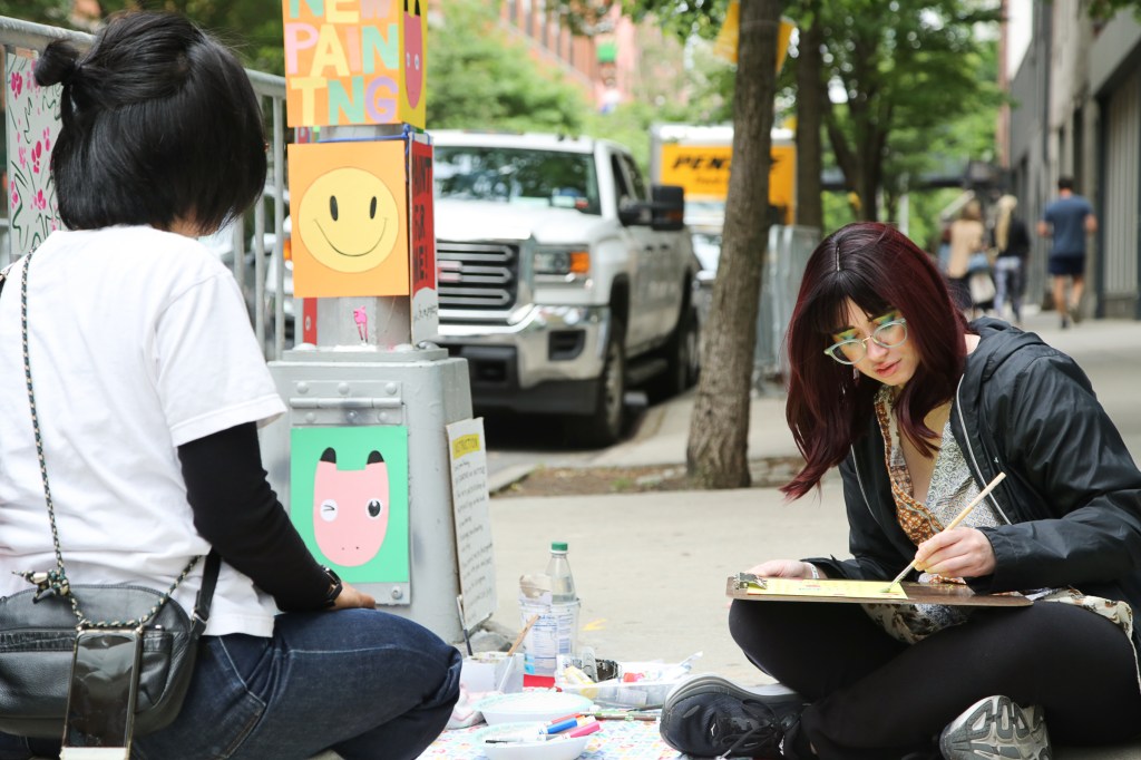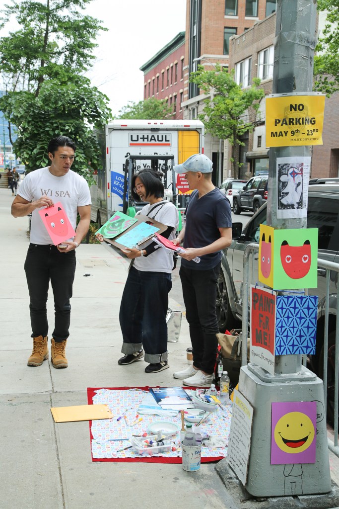 Several iterations of “Paint for Me!” have been held by the artist in New York City both indoors and outdoors, including NADA Flea, in the Chelsea district during New York Art Week in 2023, and outside KODA/RU House in Governors Island.