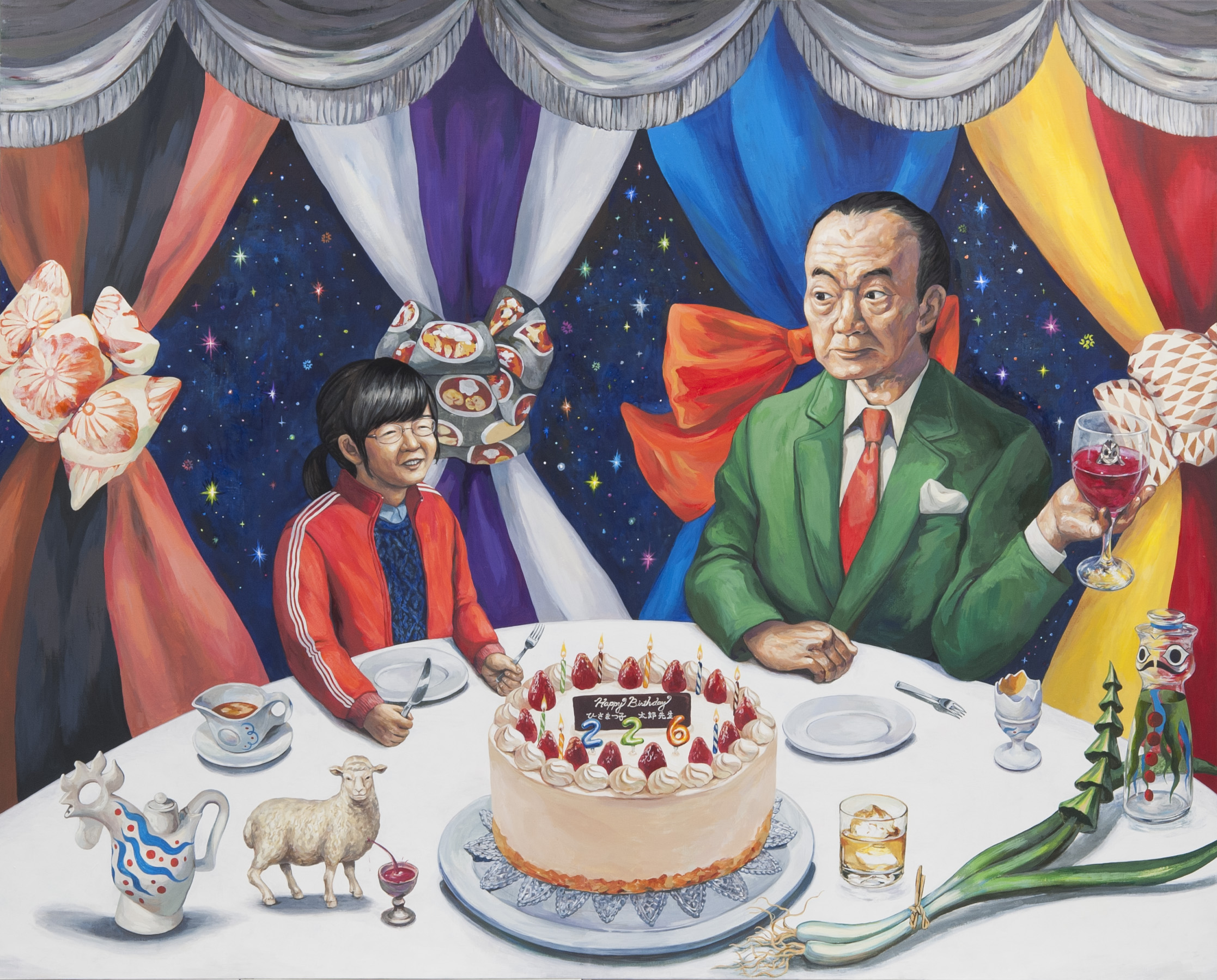 画像:「岡本太郎と誕生日会」 素材:キャンバス、アクリル絵具 サイズ:1620 x 1300 mm