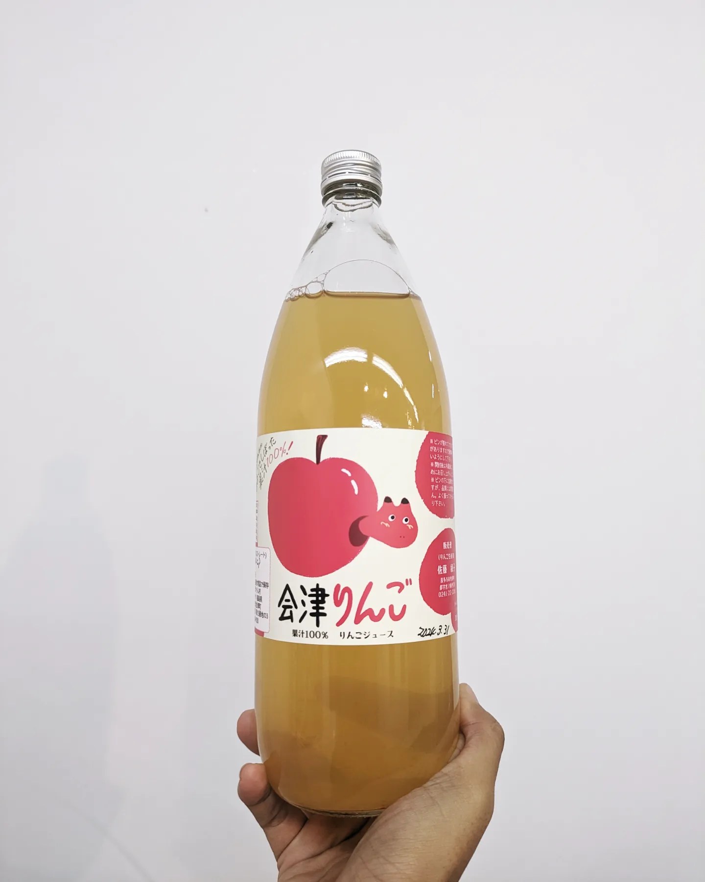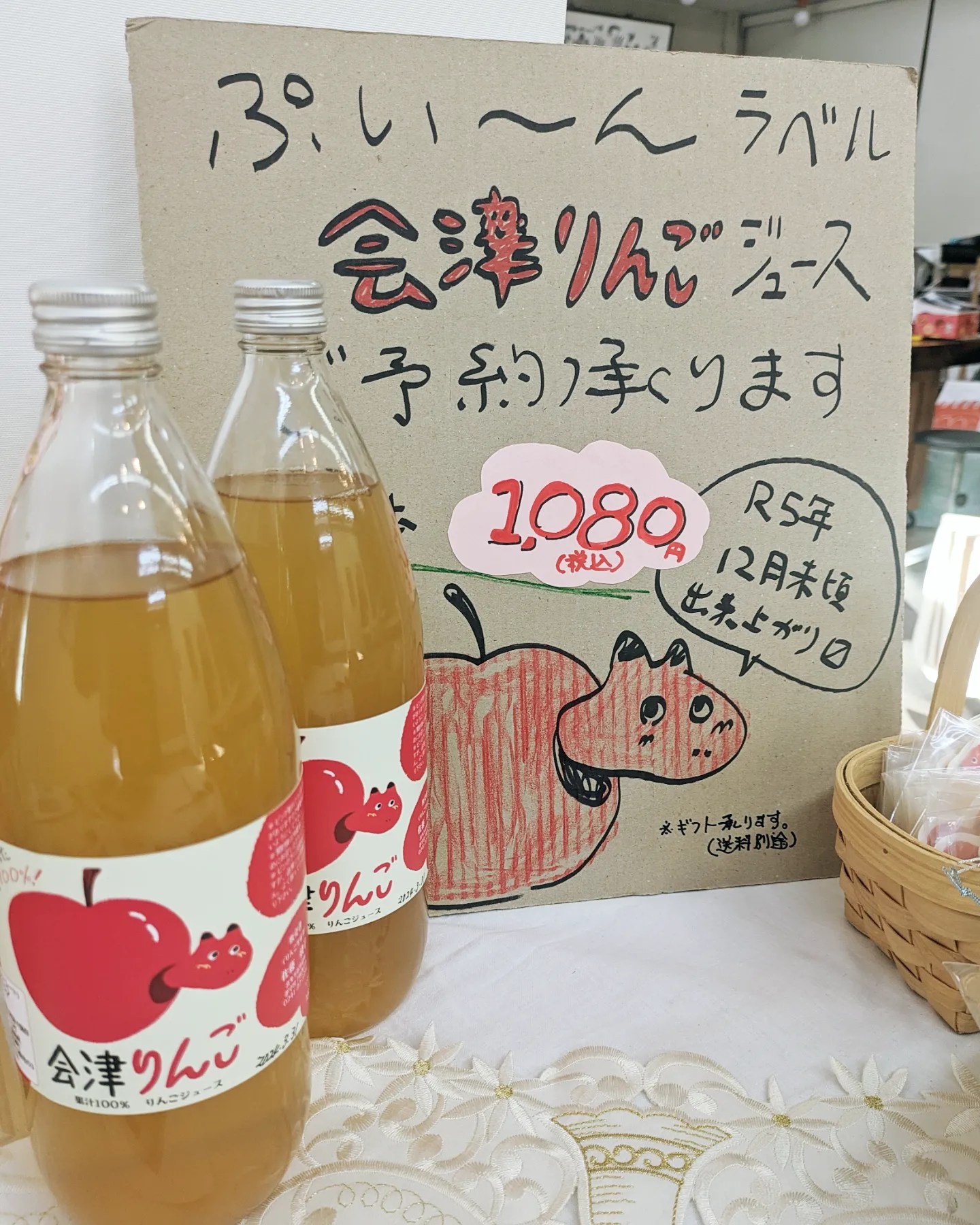 つじるし衣料品店とのコラボレーションで、喜多方産会津りんごを使ったリンゴジュースのラベルもデザインしました。