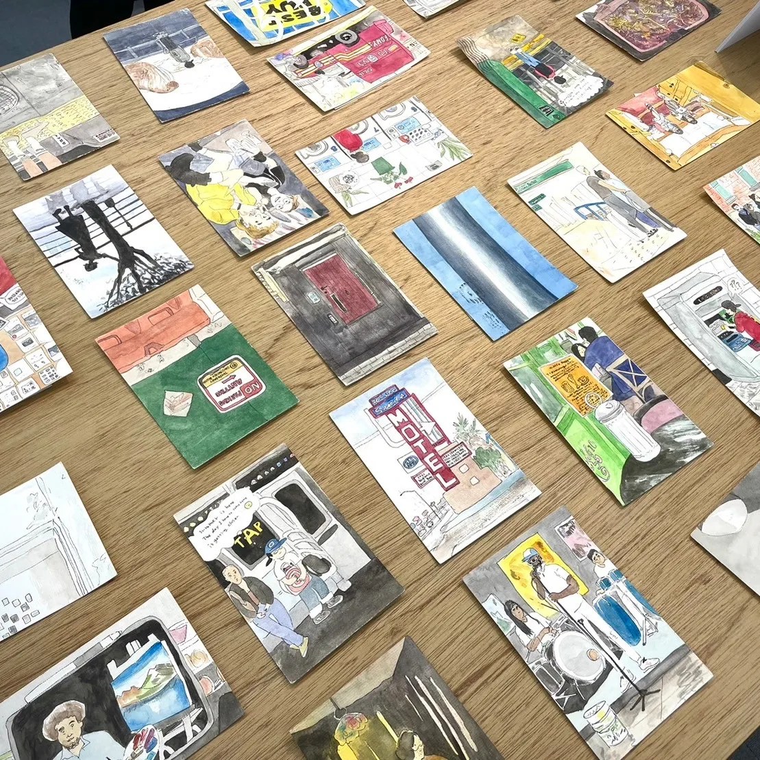 福島県喜多方市のギャラリーつじるしでは、12月1日(金)より6日(水)まで「久松知子展 おかえり、ただいま」が開催されます。1年間のニューヨークでの滞在中に制作した絵葉書のシリーズも展示します。ぜひお楽しみください。オープニングパーティーは12月1日(金)18時〜20時です。作家も在廊します。