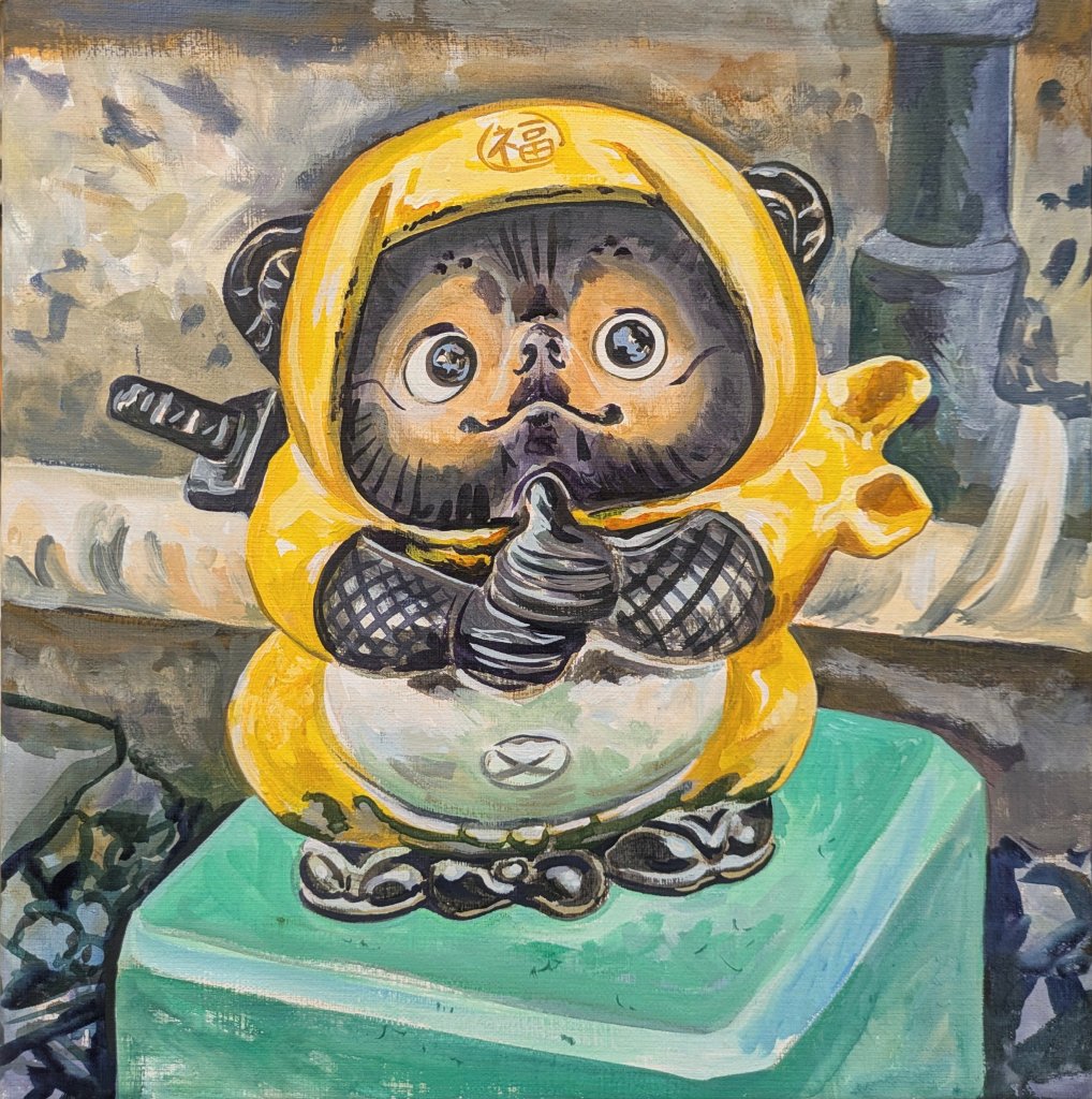 Iga Ninja Pompoko, acrylic on canvas, 275 × 278 × 22 mm, 2024