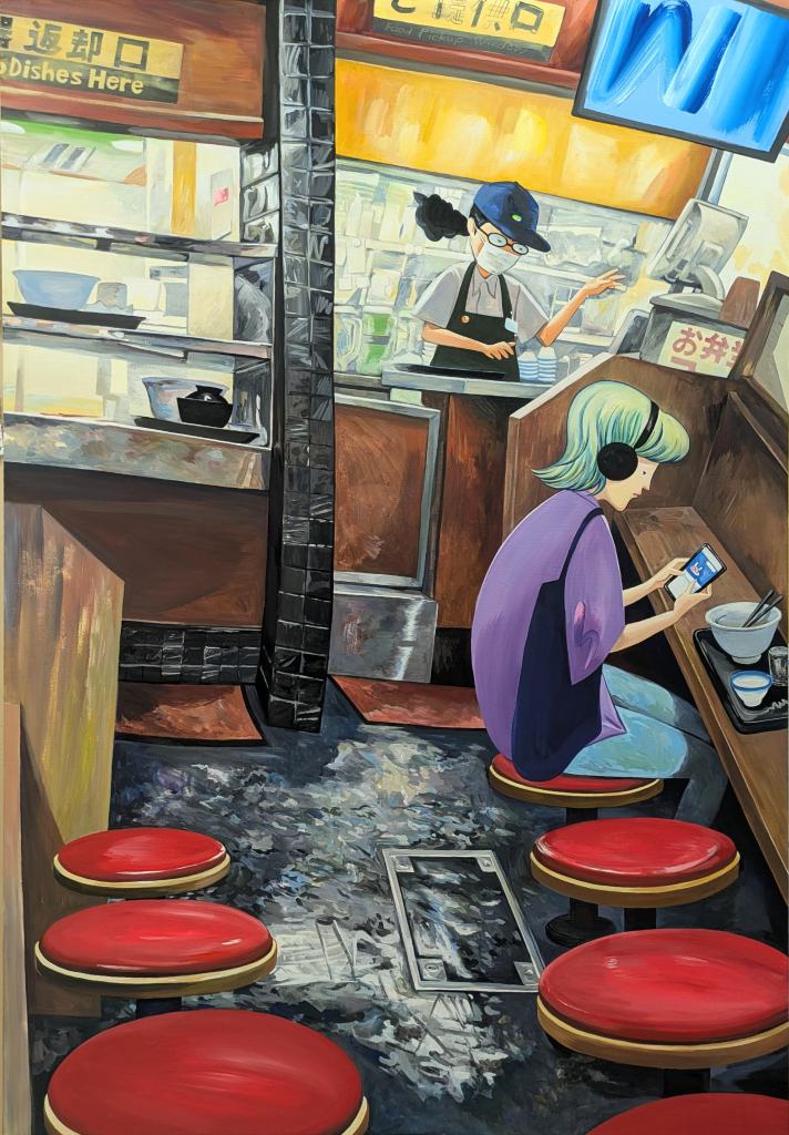 Beef Bowl Shop, acrylic on canvas, 1621 × 1122 × 30 mm, 2024–2025