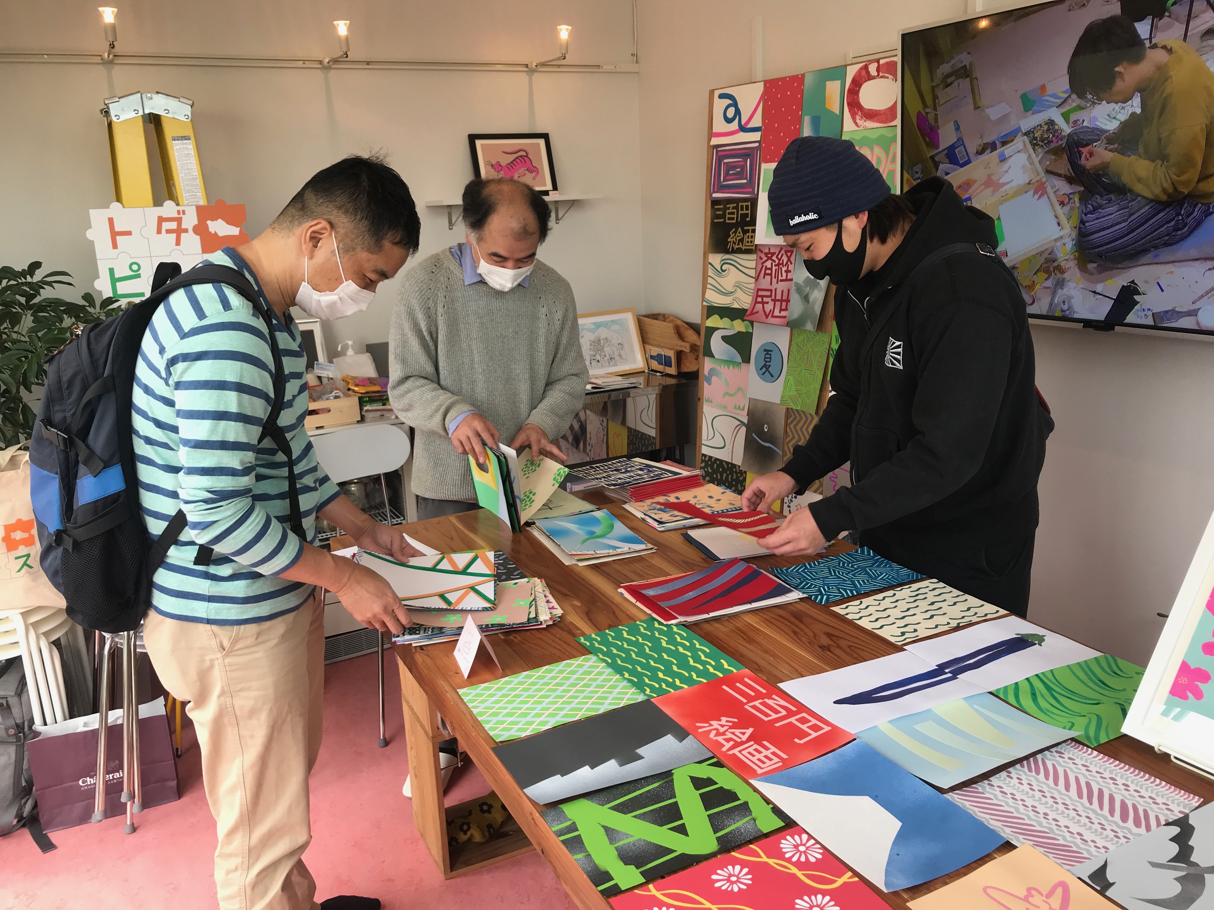 This project is to sell many B5-size drawings for 300 yen (about $3) each. It suggests anyone can buy and display art easily and investigates people’s reactions to art distribution. This project had been held at four different types of venues so far: (1) NADiff a/p/a/r/t, a bookstore specialized in art at the center of Tokyo, (2) Hane-to-kumo, a community space in the suburb of Tokyo, (3) Gallery Tsujirushi, a clothing store in the countryside, (4) E-commerce website for a limited period (http://yenpainting.theshop.jp).